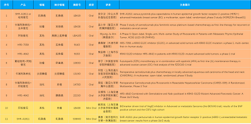 15款创新药包括10款已上市产品:注射用瑞康曲妥珠单抗(艾维达®,研发代号:SHR-A1811)、注射用卡瑞利珠单抗(艾瑞卡®)、苹果酸法米替尼胶囊(艾比特®)、甲磺酸阿帕替尼片(艾坦®)、马来酸吡咯替尼片(艾瑞妮®)、阿得贝利单抗注射液(艾瑞利®)、羟乙磺酸达尔西利片(艾瑞康®)、氟唑帕利胶囊(艾瑞颐®)、瑞维鲁胺片(艾瑞恩®)、海曲泊帕乙醇胺片(恒曲®),以及5款未上市产品,包括KRASG12C抑制剂HRS-7058、KRASG12D抑制剂HRS-4642、选择性的AR-PROTAC(雄激素受体-蛋白降解靶向嵌合体)小分子HRS-5041、抗PD-L1/TGF-βRII双抗瑞拉芙普-α注射液(SHR-1701)、Trop-2 ADC SHR-A1921。2类新药盐酸伊立替康脂质体注射液(II)(越优力®)及国内首仿药昂丹司琼口溶膜(艾其速®)各有1项研究入选。本文特对研究成果做了梳理,带领各位读者领略AG电子医药创新之光。