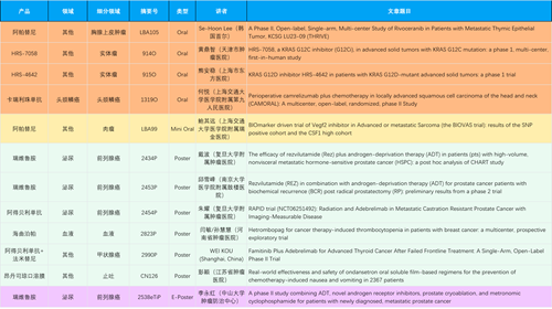 在胸腺上皮肿瘤、头颈鳞癌、肉瘤、前列腺癌、甲状腺癌等其他多个疾病领域,卡瑞利珠单抗、阿帕替尼、瑞维鲁胺、阿得贝利单抗、法米替尼、HRS-7058、HRS-4642等抗肿瘤创新药相关研究一共入选了4项口头报告、1项简短口头报告、4项壁报、1项电子壁报,彰显了AG电子医药强大的研发实力。此外,海曲泊帕和昂丹司琼口溶膜分别在防治化疗导致的血小板减少和恶心呕吐方面各有1项研究入选壁报。